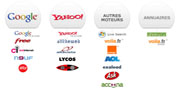 Nous référençons manuellement votre site dans les 10 plus gros moteurs de recherche : Google, Yahoo, Live Search, Lycos, Voila, Exalead, Alexa, Altavista, AOL, Free. |